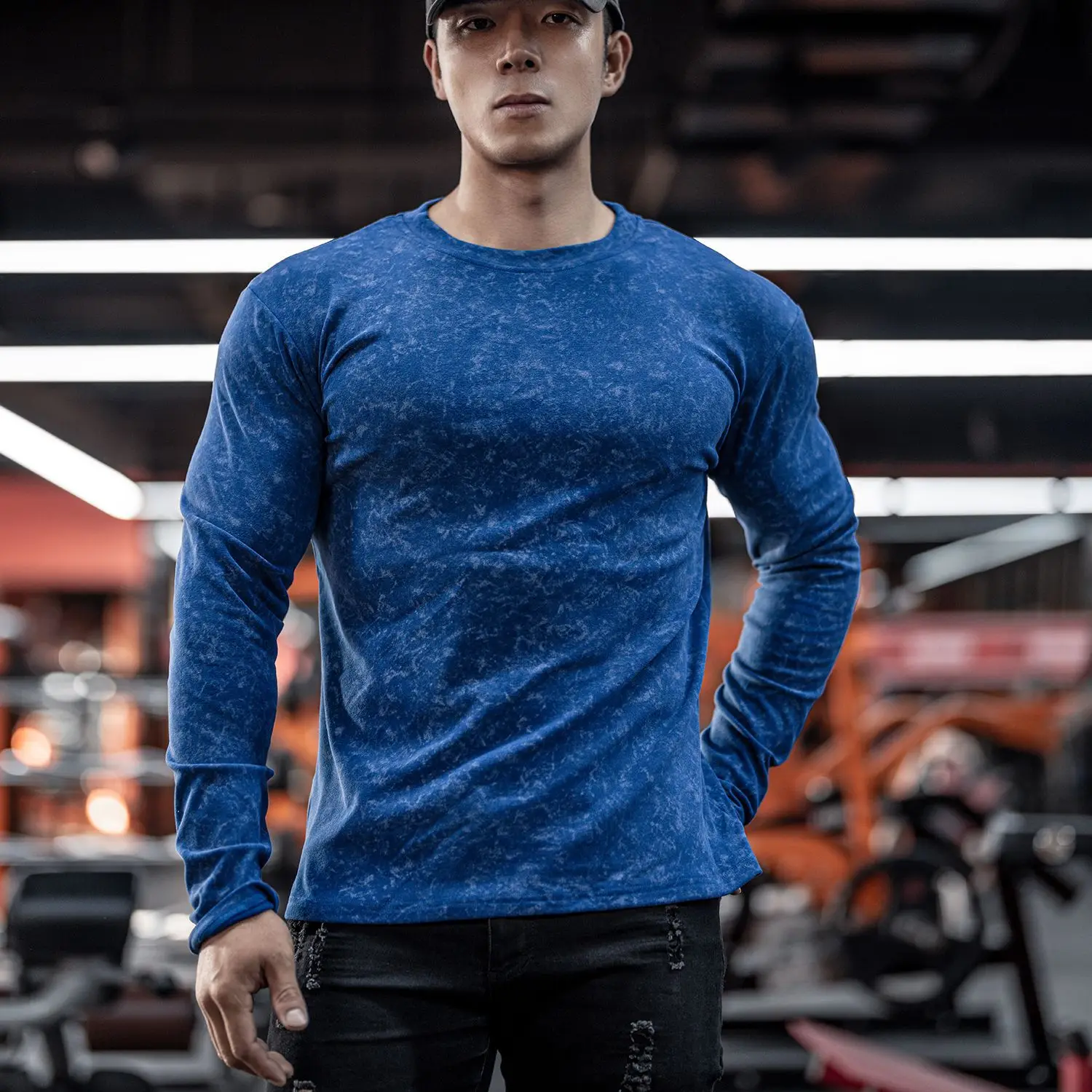 Tie Dye Velvet Long Sleeved Men’s Fitness T Shirt