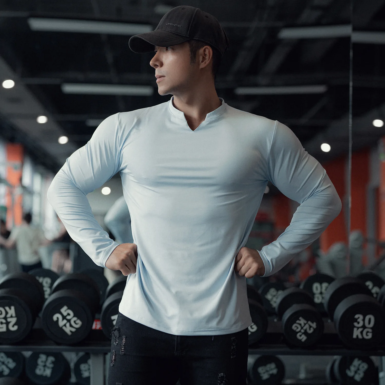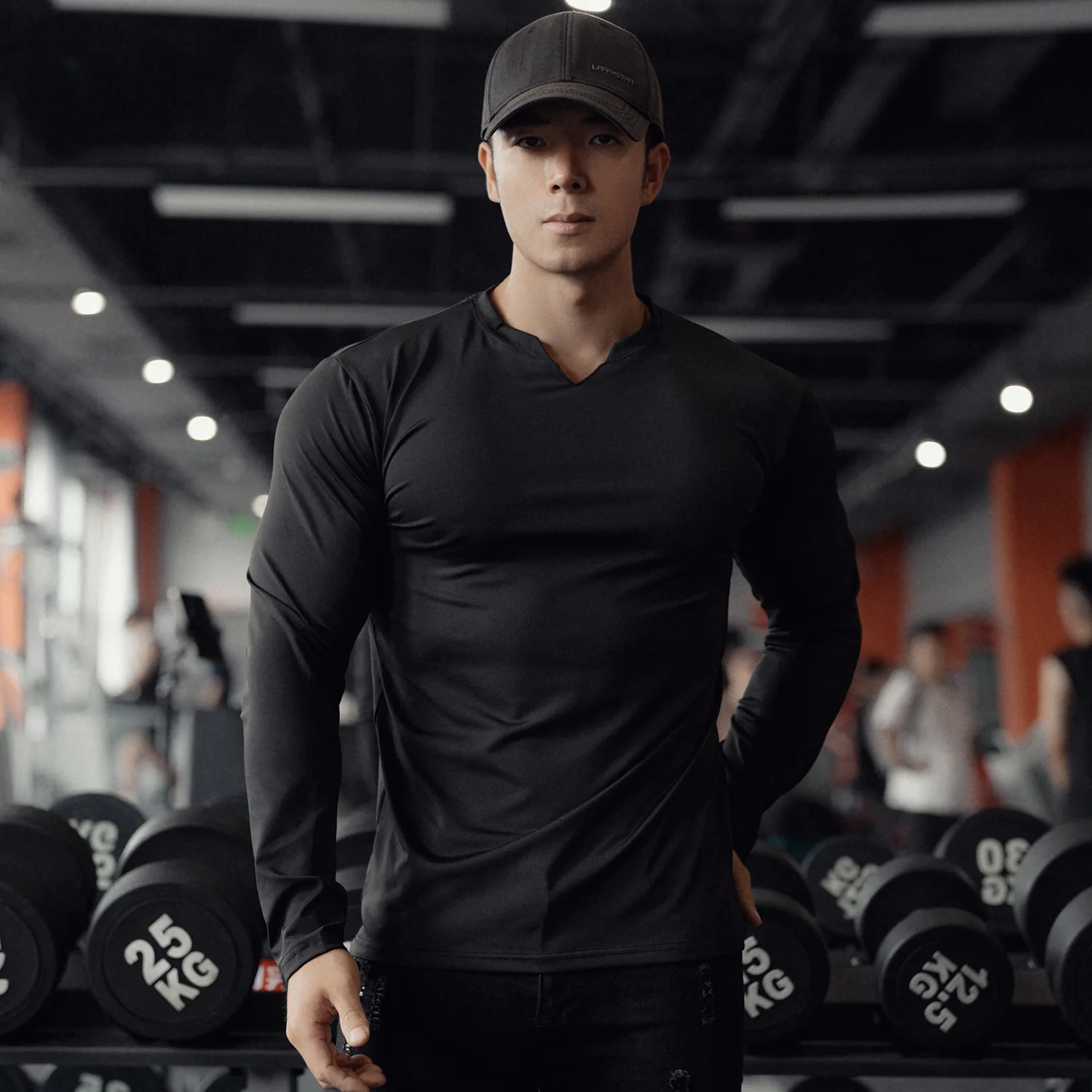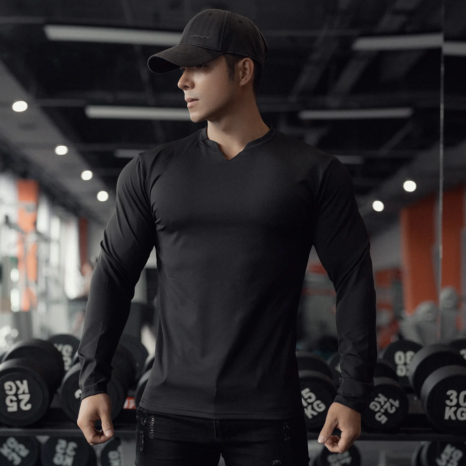 V Neck Quick Drying Long Sleeved Men’s Fitness T-shirt